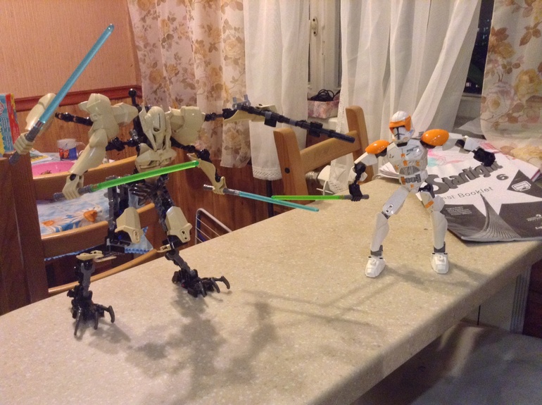 Им нравится когда деталей много:)) Похожими роботами Коля раньше увлекался, валяется несколько разобранных.