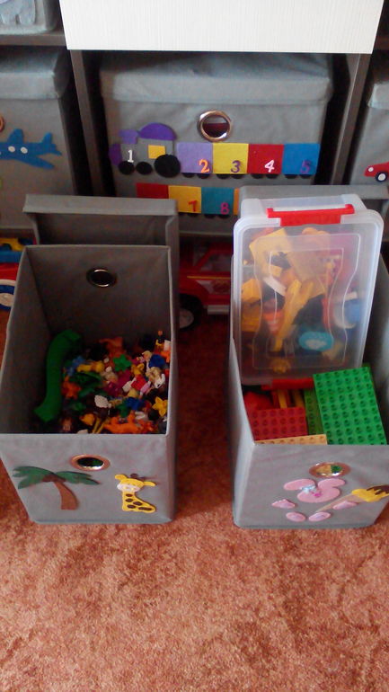 В серых боксах Лего дупло, думаю в последующем и верхние займем))) есть еще много наборов в коробках, ждут когда немного подрастет)))