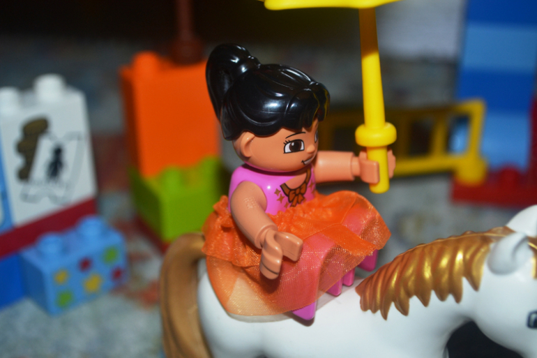 Сюжетно-ролевые игры с этим набором могут быть очень разнообразными, можно режиссировать целые представления со множеством номеров)) На представления у нас обычно приглашены человечки из других наборов Дупло))
