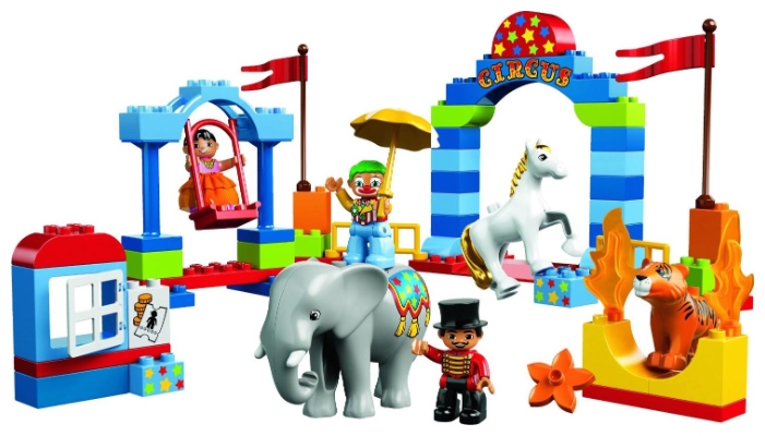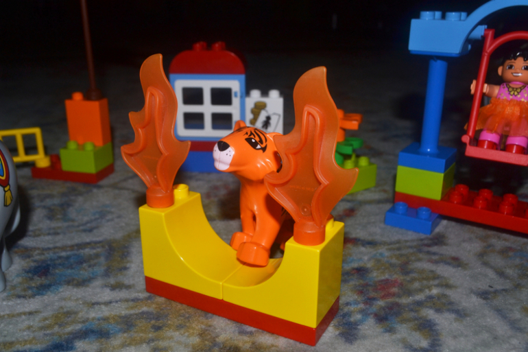 Несмотря на название, набор не такой уж большой, из сооружений только кулисы, касса, качели, барьер с огнем, но детали все интересные, немного творчества и можно построить много всего необычного. И все же главная прелесть набора в том, что в него входят уникальные минифигурки и интересные ребенку животные. Дупло-человечки действительно классные, в этом наборе их 3: