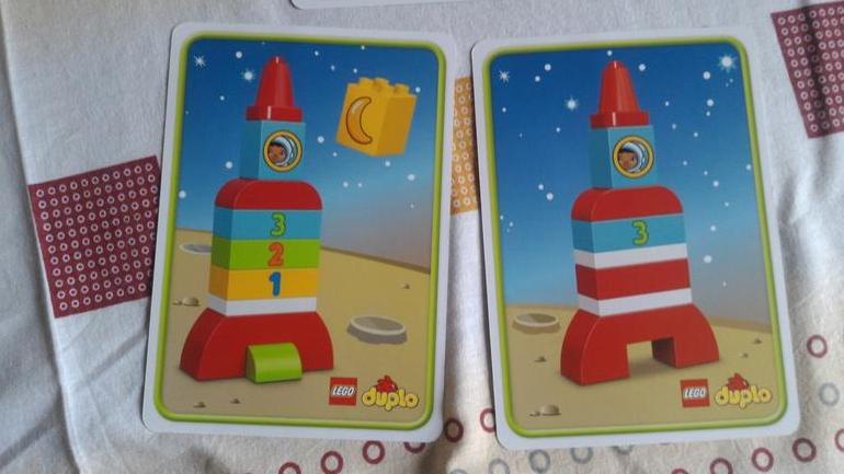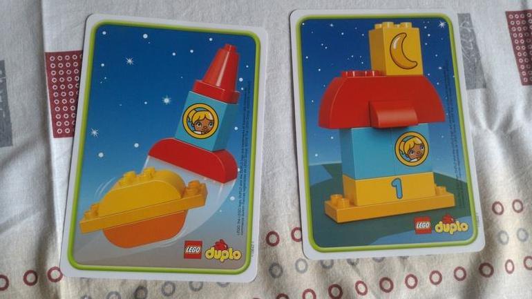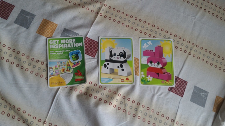 На самом деле у нас пока их всего два: 10573 Веселые зверушки и 10815 Моя первая ракета,но на их примере расскажу о наборах с такими инструкциями. Конечно для больших и сложных наборов пошаговые инструкции объективней,думаю ребенку проще по ним разобраться,а для простых наборов вполне подойдут такие наборы с карточками. Моя к сожалению пока ими пользоваться не умеет,но я надеюсь они все же дождуться своего часа))