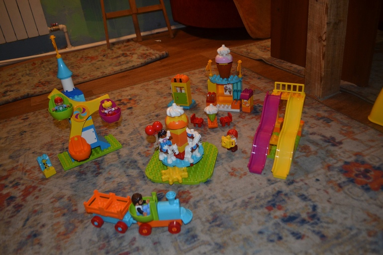Весёлые загрузкиВсем привет! Как только в линейке Лего Дупло появился набор Большой парк аттракционов, я всем сердцем пожелала приобрести его в нашу большую коллекцию дупло. И вот наконец мы являемся счастливыми обладателями этого чуда! У нас около 20 наборов Дупло, и парк аттракционов настоящее украшение нашей коллекции. Набор Большой, в нем много интересных механизмов, необычных деталей, которых у нас не было, целых 5 минифугурок человечков. Дети в восторге, мама счастлива)))
