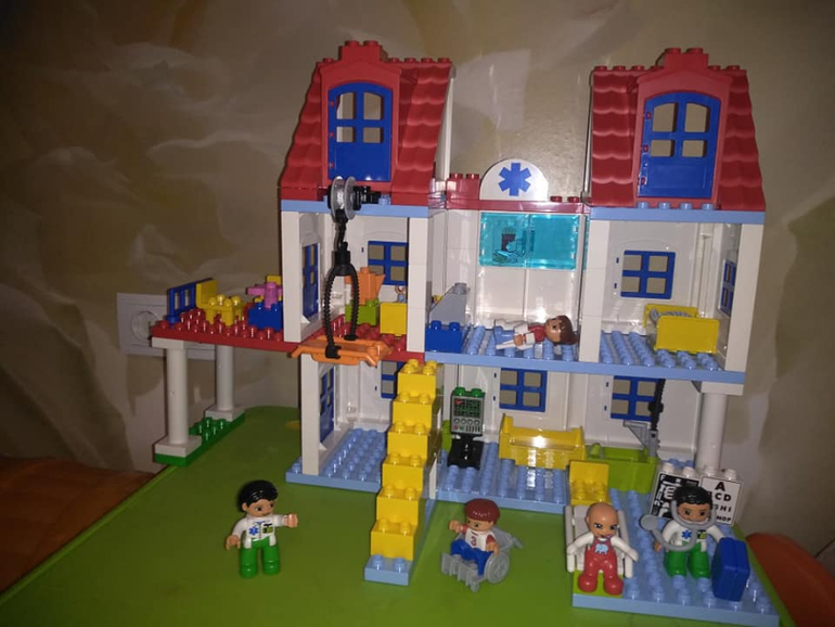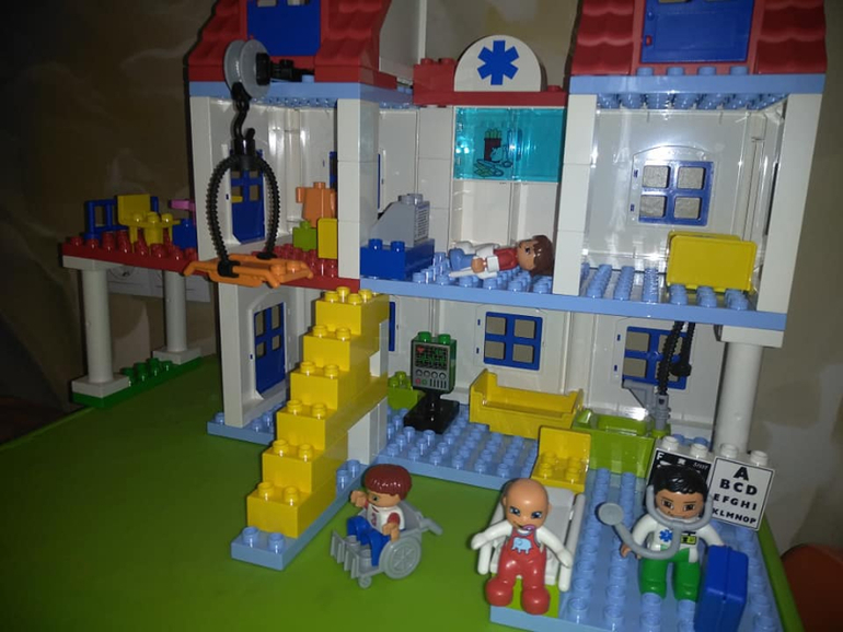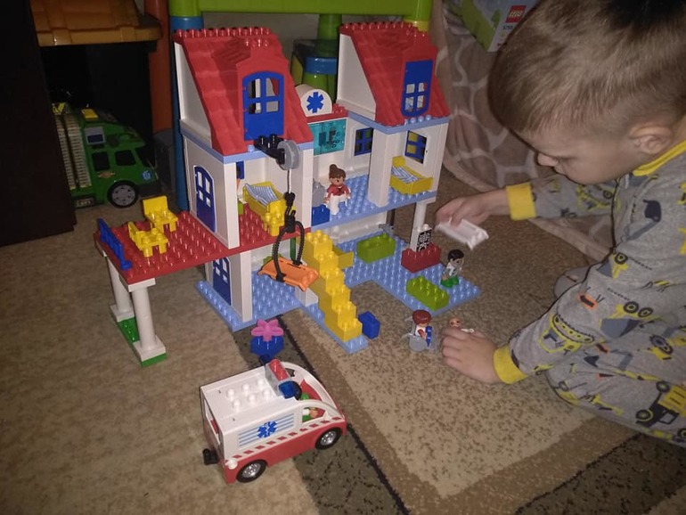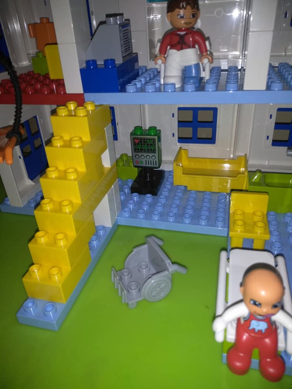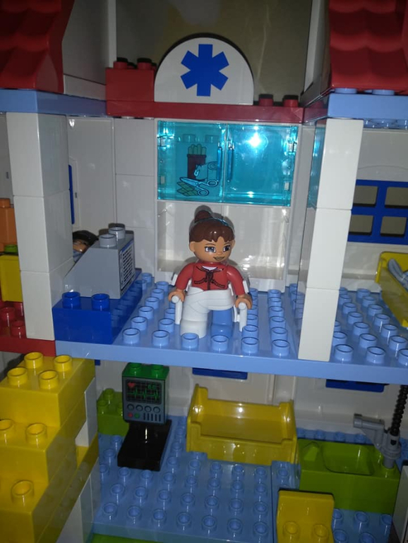 Распаковка набора больница прошел на ура!!!! Не перестаю восхищаться Лего 2012-2015 года, очень крутые наборы, все продумано до мелочей. В наборе масса элементов, которые наполняют смыслом игру в больницу, и скорая помощь со свето- звуковой мигалкой, и гипс с костылями, и коляска для людей с ограниченными возможностями, и малыш, и даже постелька в кроватки, а так же приспособление для подъёма больных на второй этаж. Шкаф в процедурном кабинете, где хранятся бинты, шприцы и лекарства. Набор большой и интересный. Наслаждаемся ролевыми играми)))) Особое впечатления для моего мальчика произвела карета скорой помощи)))