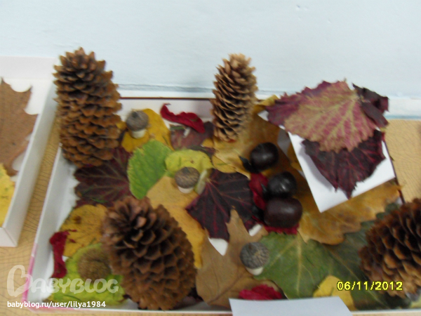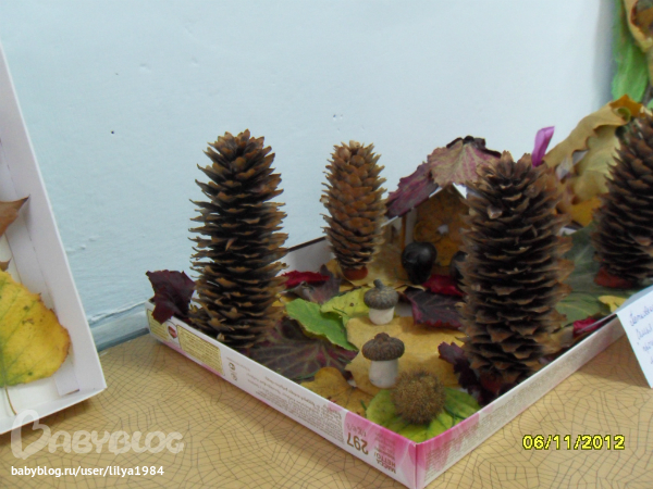 Не успели пойти в садик, как уже задали поделку на тему осени. Ну что ж, вот что у нас получилось. "Семья улиток в осеннем лесу".