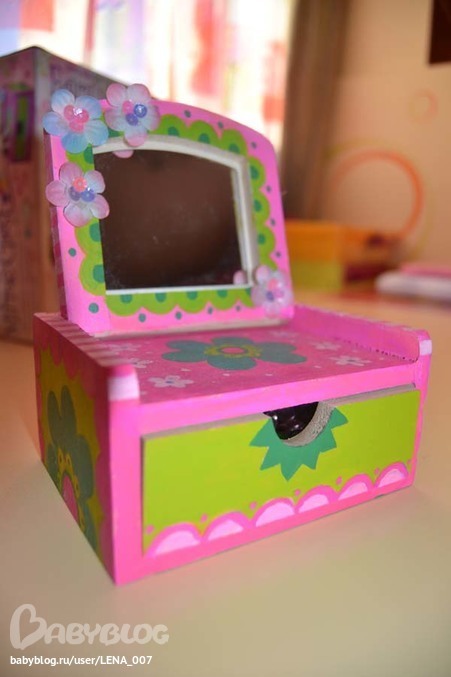 С Дианой расскрасили деревянную шкатулку акриловыми красками.Теперь занимает почетное место у нее на столе,осталось еще фею сделать и посадить на шкатулочку