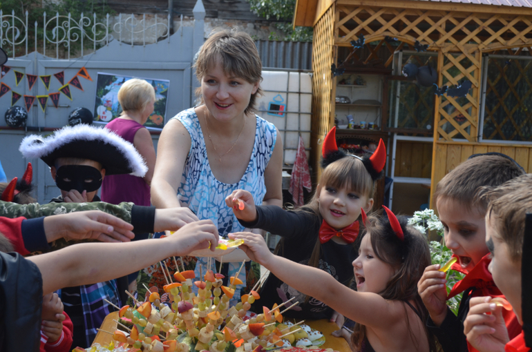 Видела отзывы на подобный праздник, что все это ужасно, зачем детям вся эта нечисть и т.д., однако всем понравилось и никто не напугался, ну может быть только ничего не понимающие соседи, которые непонимали откуда взялось столько чёртиков, ведьмочек и вампиров!