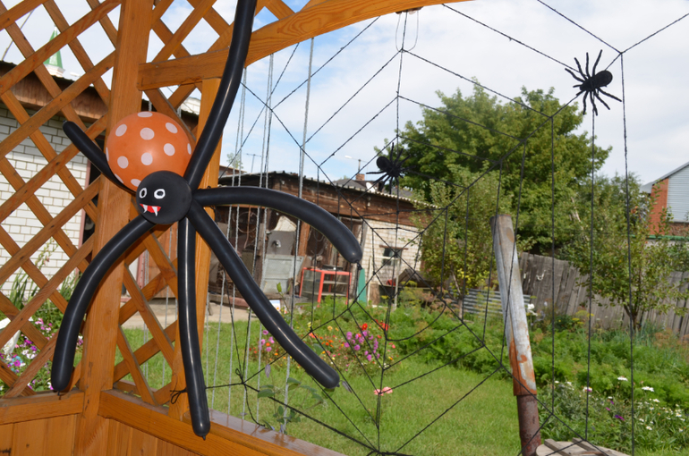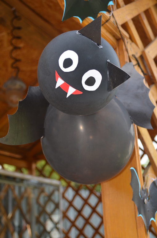 Паука и летучую мышку из шариков делали мы с сыном.