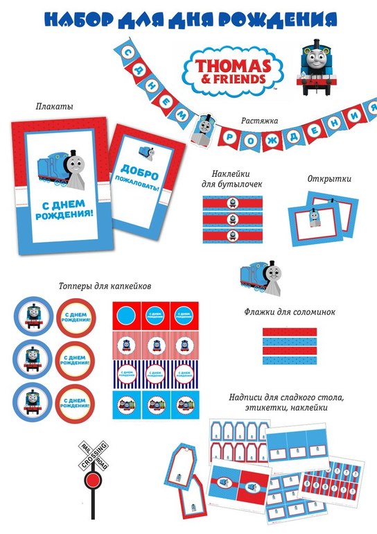 Готовый набор для печати для вечеринки в стиле "Паровозик Томас" могу вам ее предложить в электронном виде. Стоимость электронного файла для печати 500 р.