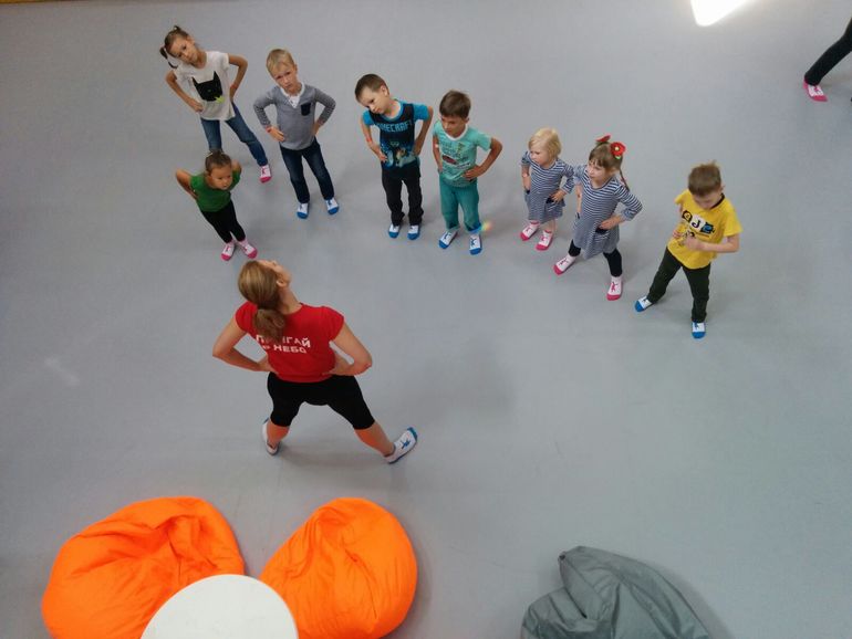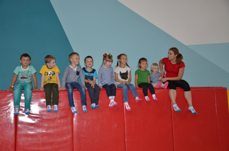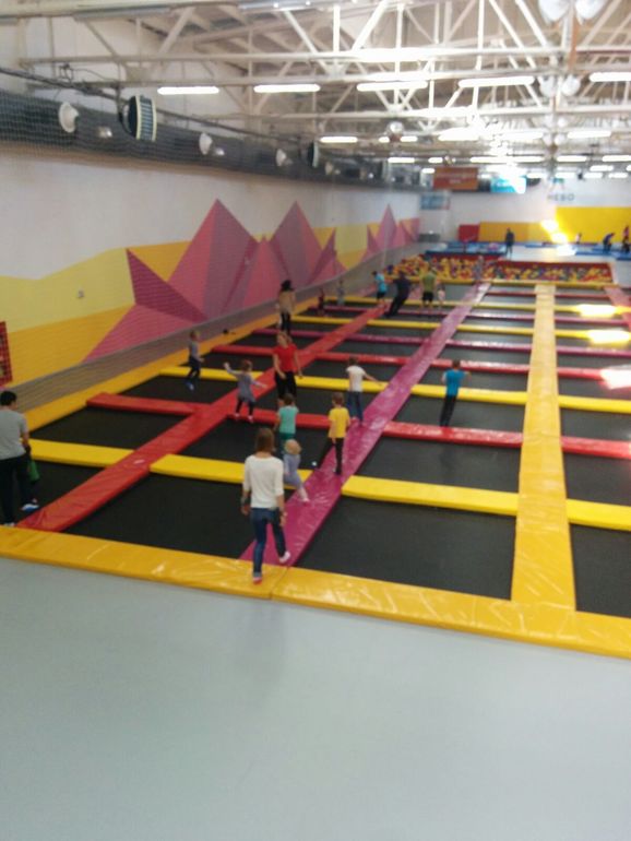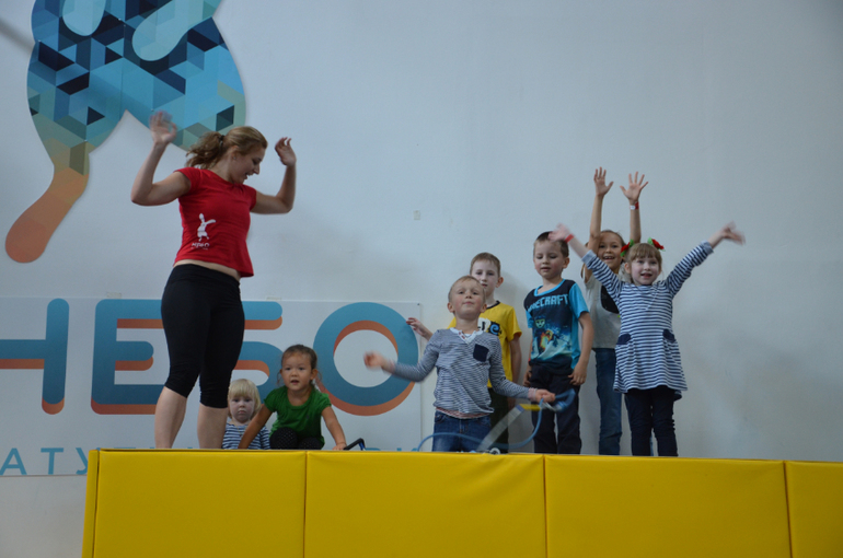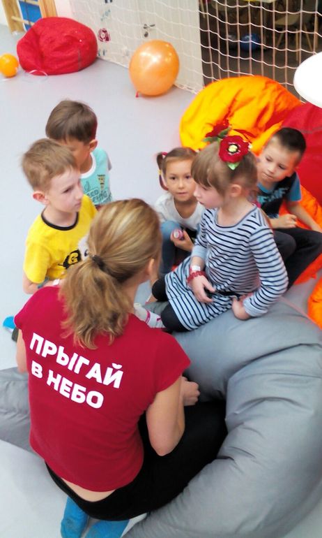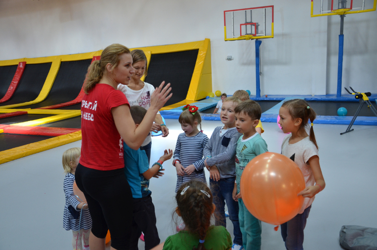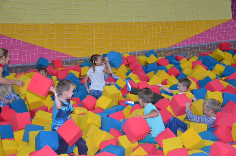 Тренер с ребятами целый час играла, мы с родителями сидели и смотрели (там хороший обзор), некоторые взрослые тоже попрыгали с удовольствием.