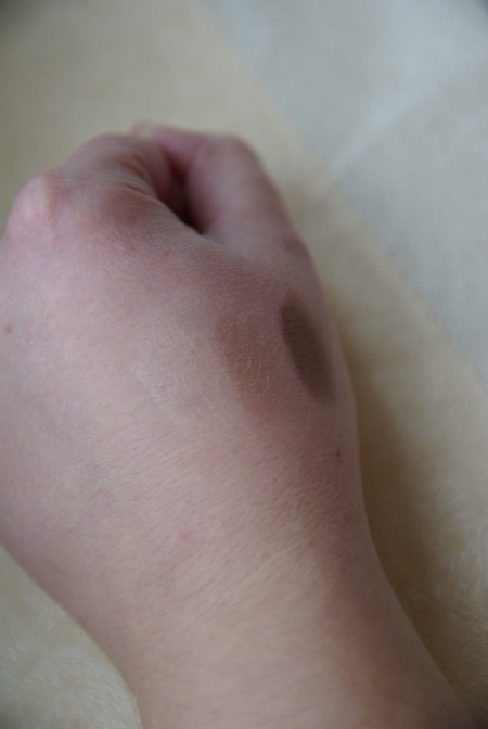 Темно-коричневый и бежевый - матовые оттенки, а светло-коричневый- шиммерный, но очень деликатный. Тени хорошо ложатся, наношу на базу Artdecco. Без базы пропадают буквально через пару часов, собираются в складку. Можно использовать мокрую кисточку для достижения более яркого цвета. Я так темным цветом рисую стрелку на верхнем веке.