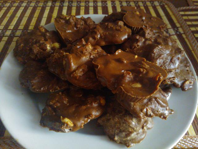 Добавила в шоколад так же немного изюма, кураги, смесь орехов - все, что нашла дома и немного стевии с ароматом шоколада.