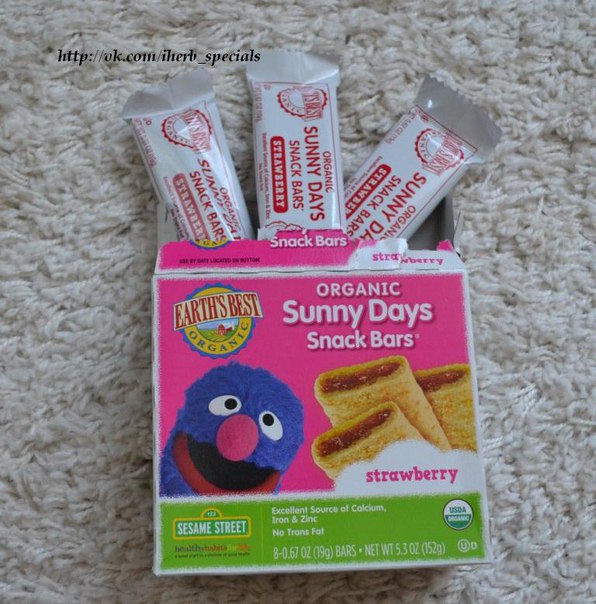 Еще один представитель продукции Earth's Best, которая так нравится, как мне, так и детям. В небольшой коробке находятся 8 батончиков в индивидуальной упаковке. Батончики очень свежие, мягкие, внутри находится что-то типа клубничного повидла (ребенок почему-то считает, что это шоколад). Отлично подходят для перекуса, удобно брать с собой.
