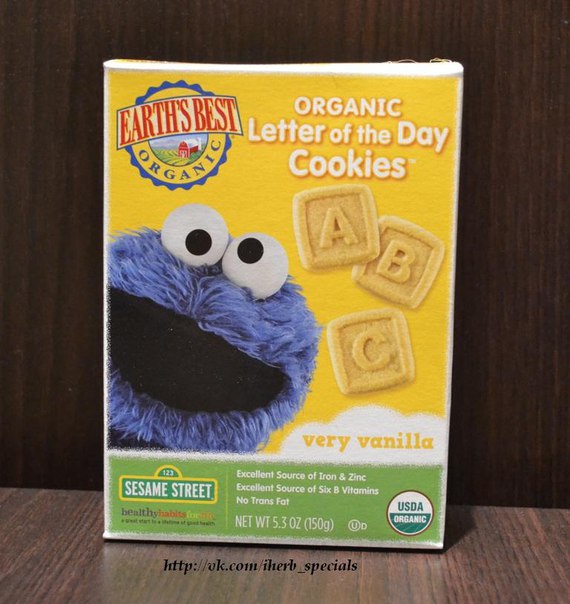 В большой по размеру пачке находится 150 г квадратного песочного ванильного печенья с буквами, поэтому его можно не только есть, но и выбирать знакомые буквы (основная проблема в том, что английские буквы ставят нас в тупик). Печенье вкусное, в составе 6 витаминов группы В, кальций, железо и цинк. Не содержит ГМО, искусственных ароматизаторов, красителей и консервантов.