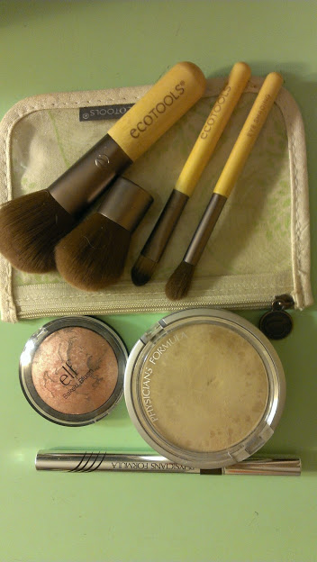 ну и пару слов про кисти у меня отличные кисти-искусственный ворс-нежный, ручка деревянная приятно ложится в руку. этот наборчик-так сказать-дорожный, но мне хватает и размера такого и удобно, то что они в льняной косметичке.