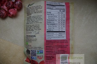 Состав USDA Organic, без глютена, кошерные. Кто выбирает сладости по этим критериям, то можно попробовать. Кто ищет что-то вкусное, то проходите мимо. Хотя, возможно, кому-то эти конфеты и нравятся, не знаю. У нас в фаворитах по-прежнему