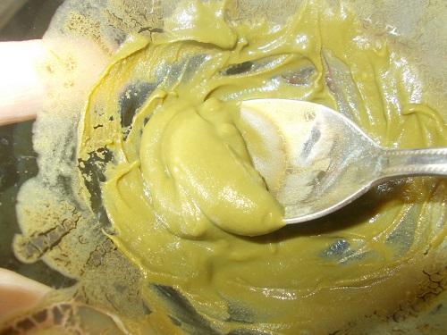 Развожу почти горячей водой: 1 ч.л. порошка на 1,5 ст.л. воды, тщательно перемешать, чередую с добавками, делаю с йогуртом натуральным, маслом . Держать на коже минут 15-20, в первый раз лучше поменьше, что бы проверить реакцию кожи, у меня было покраснение по контуру маски, больше не повторялось. В процессе подсыхания желательно сбрызгивать водичкой или какой другой полезной жидкостью. Смываю теплой водой, лучше сразу в душе, что бы мороки меньше.