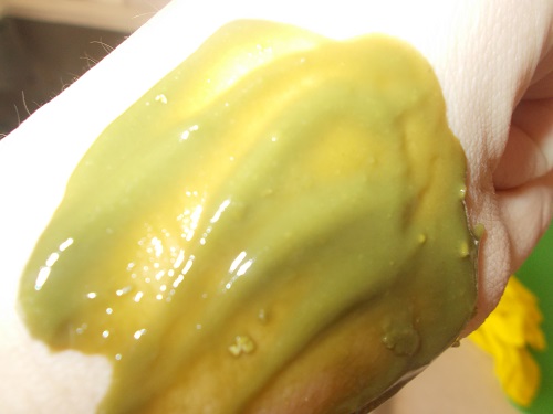 получается маслянистая, очень приятная на ощупь масса, такое ощущение, что добавлено масло, она прям жирненькая, наношу на очищенное скарбом лицо до подсыхания, минут на 15, в отличие от аптечных вариантов не сохнет до корки, лицу комфортно, смываю прохладной водой.