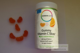 По количеству положительных отзывов Витамин С Rainbow Light, Gummy Vitamin C Slices, Tangy Orange Flavor, 90 Gummies является лидером, среди продуктов этой фирмы. Мармеладки мягкие, желейные, сверху обсыпаны сахаром. Я ими спасаюсь вечером, когда подкрадывается подлый приступ жора. Разжуешь такую кисло-сладкую штучку и голод отступает, можно дожить до утра :)