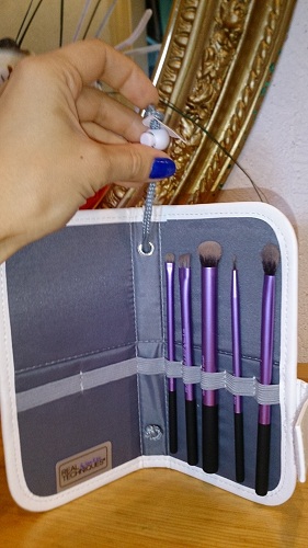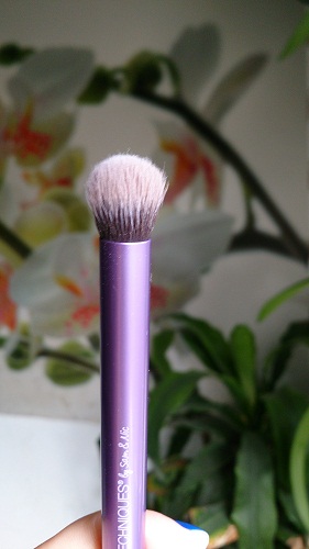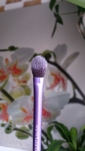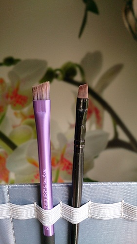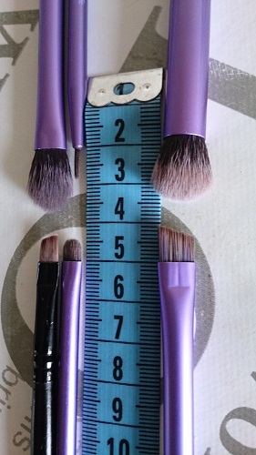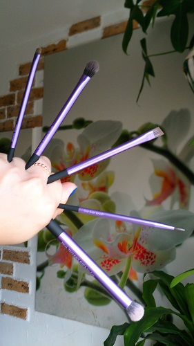 У меня она именно так всегда и выглядит. Что могу сказать конкретно по качеству кистей - они оооооочень качественно сделаны! Ворс туго набит, ничего не вылазит, не мохрится, не стирается и не отклеивается. Качеству из пяти баллов я дала бы 10! Вот просто поверьте мне, ибо это правда и истина! Качество суперское. Тени набирают хорошо, отдают - тоже. Моются прекрасно. Для фото я кисти специально не мыла, чтобы вы видели, что кисти действительно используются, а не лежат мертвым грузом. Далее, немного минусов, точнее, не минусов, а особенностей: кисти большие. Я неспроста на фото кисти для бровей показала свою обычную кисть, чтоб вы понимали, чем я привыкла пользоваться. Из своего месячного опыта по работе с этими кистями я сделала вывод: размер кистей - просто особенность, к ним просто надо привыкнуть и все. Чтобы не быть голословной показываю: