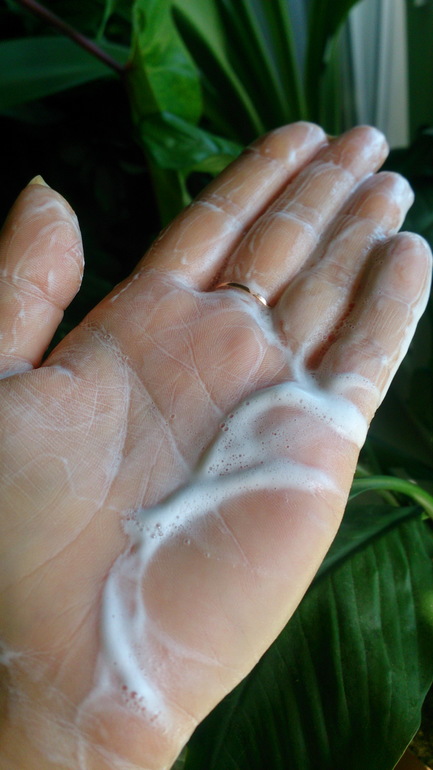 Консистенция умывалки один-в-один консистенция хлопкового средства для умывания от Кларанс. И оно такое же нескончаемое! Достаточно половины горошинки, чтобы умыть себя и того парня, а, если еще пользоваться щеточкой для умывания, можно и квартиру отдраить.