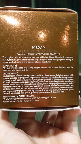 1.Таки не врут досужие интернет-домыслы, достопочтенный Мизон и правда не пожалел улиточной слизи - ее в баночке завались! Помятуя о том, что улиток с целью выделения ими дрожайшей слизи как-то там, на фермах, то ли специально пугают, то ли раскручивают на центрифугах, слизи в этот крем напахтала, как минимум, целая перепуганная гвардия отцентрифуженных улиток) О чем, кстати, и свидетельствует состав: на первом месте в креме именно фильтрат слизи в дозировке 92%!