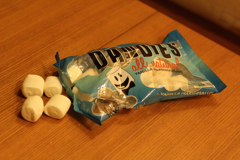 Состав: сироп тапиоки (зернистый крахмалистый продукт, получаемый из корней маниок), тростниковый сахар, крахмал тапиоки, фильтрованная вода, каррагинан (природный сахарид или загуститель, получаемый из красных морских водорослей), соевый белок, наутральный ароматизатор ваниль. Одна из любимых моего сына - это зефир, поэтому я не смогла удержаться, когда нашла его на сайте. Вкусные, нежные и большие зефирки с легким ванильным вкусом, которые можно съесть просто так, добавлять в какао, но вкуснее всего поджарить их на костре (когда нет такой возможности, можно и дома на свечке), для этого нужно буквально пол-минутки (даже меньше). Получается тонюсенькая корочка,а под ней нежная тянучка, похожая на горячее мороженое.