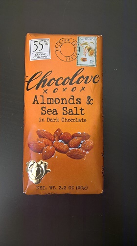 В итоге, что имеем : темный полусладкий "шоколад-любовь" - содержание какао 55%, плюс необычное сочетание обжаренного миндаля и морской соли.