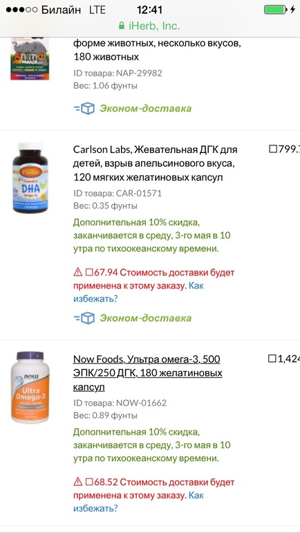 прошу советаДобрый день! Прошу помощи опытных айхербщиц. Делала заказ на сайте 2 раза. Оба раза не было никаких проблем и вопросов. Продукты были разных размеров, от больших (450гр) до маленьких (30 мл). Вчера насобирала новую корзину, сумма больше 5000р. На некоторых продуктах, даже пробниках, стоит приписка о сумме доставки ( это что, новшество на айхерб? Нужно заказывать продукцию только с эконом-доставкой? А если мне нужно сейчас, то придется оплачивать Доп доставку, даже если сумма больше 60$? Или я что то не так делаю?