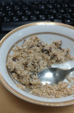 Я взяла его сразу на работу, и теперь там запариваю овсяную кашу, или полбяную, и потом добавляю финики. Придают карамельный вкус!