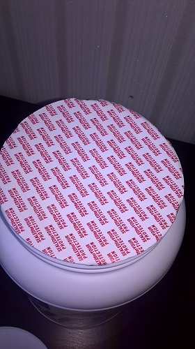 Банка внушительного размера, внутри запаяна бумажной прослойкой, есть мерный ковшик.