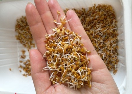 Если не съели все сразу, можно хранить в холодильнике проростки пару дней.