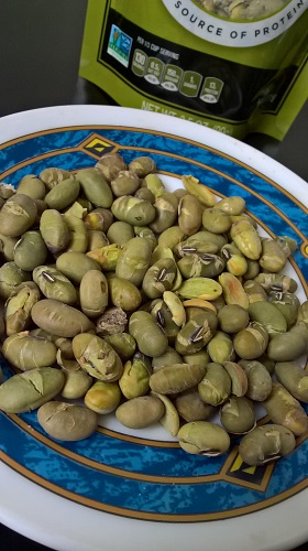 " Сухие жареные зеленые соевые бобы (эдамаме) - это здоровое и вкусное питание, богатое растительными витаминами, клетчаткой и силой сои. Наши сухие жареные зеленые соевые бобы содержат все необходимые аминокислоты, натуральным образом не содержат холестерол и трансжиры"