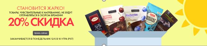 Сохраните 20% на избранные товары Сезонные, чувствительные к жаре товары. Действует до 12 июня. Мы временно снимаем с продажи эти товары с 15 июня по 30 сентября, потому что они могут растаять или испортиться во время транспортировки.