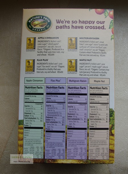 Продолжаю знакомиться с продуктами фирмы Nature's Path. Уже покупала гранолу и кашу с кленовым сиропом. В этот раз приобрела Выбрала ее, потому что в одной упаковке представлено 4 вкуса. Это хорошая возможность попробовать сразу несколько вариантов, а потом уже купить большую коробку с наиболее полюбившемся вкусом. Или же не покупать ничего :)