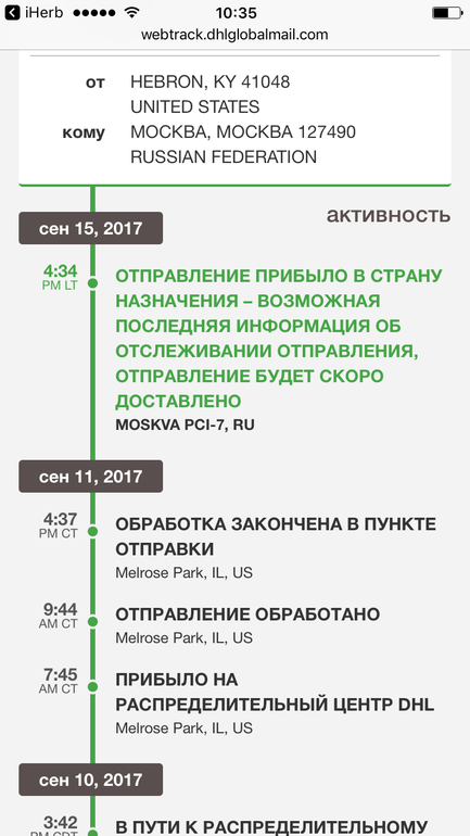 На почте дали заявление, запросила подтверждение у iherb, ответили, что посылк. По территории РФ идут до 12 недель и попросили подождать.