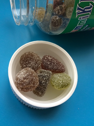 Сами зверушки жесткие, рассасываются долго, на мой вкус приятные, с легким цитрусовым привкусом.