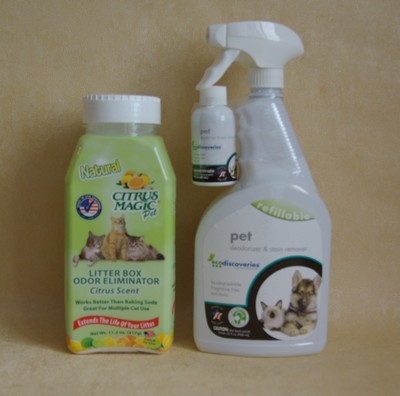 EcoDiscoveries, Дезодорант и пятновыводитель для домов с питомцами, 2 жидких унции (60 мл) концентрат с 1 бутылкой-распылителем купила ориентируясь на отзывы. Они противоречивые. Мы оказались в лагере тех, кому абсолютно не помог этот очиститель. Я брызгала на места свежих пописов, брызгала на старые пятна - результат нулевой. Остатки отдала подруге. У нее 2 престарелых кота и каждую весну они встречают, как последнюю. В смысле орут и гадююют с остервенением. На этот дезодорант-очиститель они тоже чихать хотели. Так что покупка оказалась бесполезной.