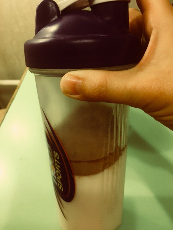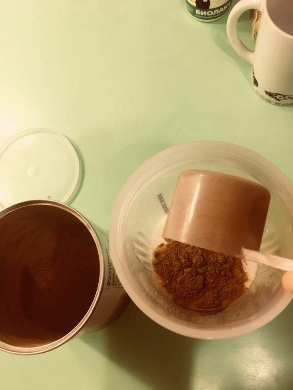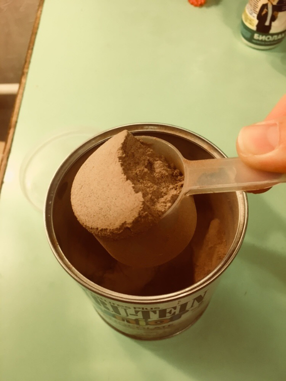 я беру полный мерный колпачок и добавляю в шейкер с молоком.