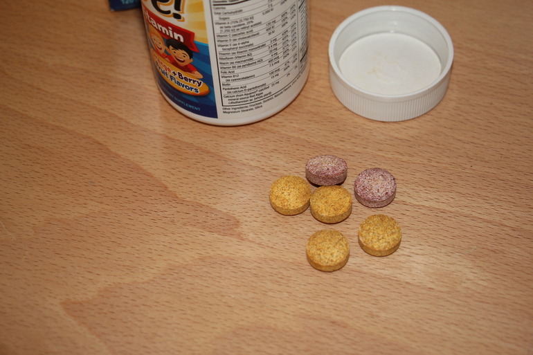 Сами витамины довольно крупные, грызутся легко. Два вкуса.
