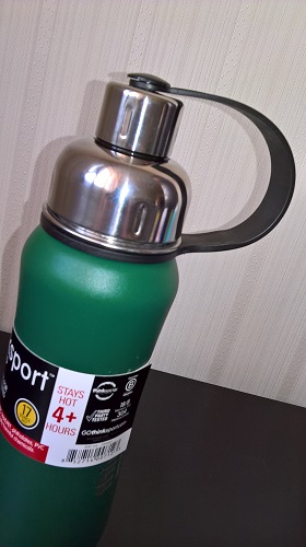 Если использовать имеющуюся крышечку, которая к тому же пристегнута петлей к термосу, то надо проявить чудеса эквелибристики и ловкость рук, что бы извернуться и не облиться.