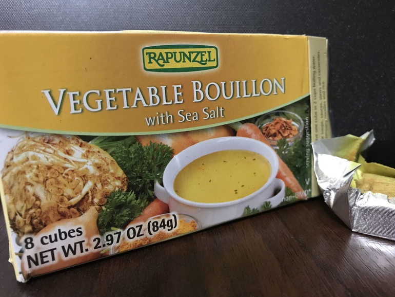 А ещё купила бульонные кубики, очень ароматные, содержат морскую соль, но есть и без соли. Также рекомендую к покупке. Rapunzel, Веганский овощной бульон с морской солью
