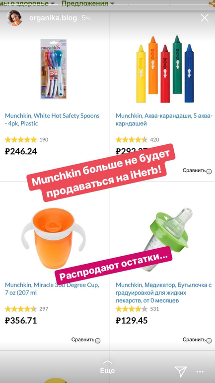 Прочитала сейчас в инстаграме что бренд Munchkin больше не будут продавать на Ахерб.