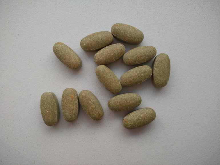 В банке 30 таблеток серо-болотного цвета, хватает как раз на курс приёма по 1 таблетке в день. В банке имеется защитная мембрана, сохраняющая свежесть добавки.