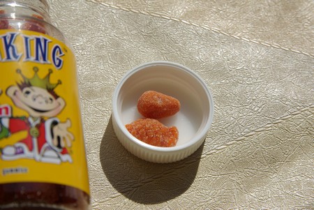 Мармеладки вкусные, кисло-сладкие. Сверху посыпаны сахаром. Запаха рыбы не имеют. Детям старше 2х лет в день съедать по 2 штуки.