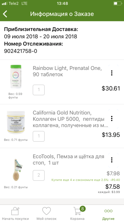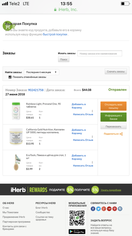 Сделала первый заказ на айхерб, вчера забрала посылку и вместо коллагена в посылки магнелиз и витамин д3 за 69 р....