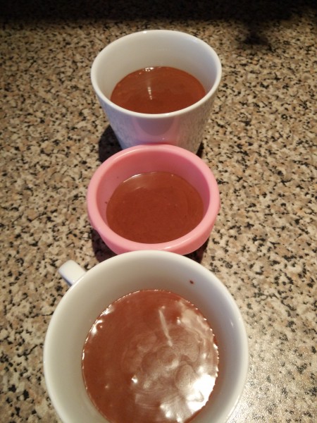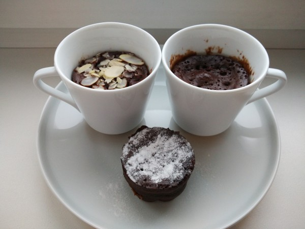 8. Разливаем полученное тесто по кружкам и отправляем в микроволновку. Если вы хотите сделать сразу несколько кексов в кружках, выпекайте их по одному: так они равномерно пропекутся.