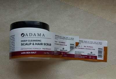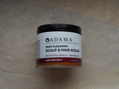 Zion Health, Adama, Глубоко очищающий скраб для волос и кожи головы, Груша в цвету, 4 унц. (113 г) представляет из себя неоднородную кремообразную массу. Ее нужно втирать в корни волос. Масса хорошо пенится, промывает до скрипа. Дополнительно применять шампунь не требуется.