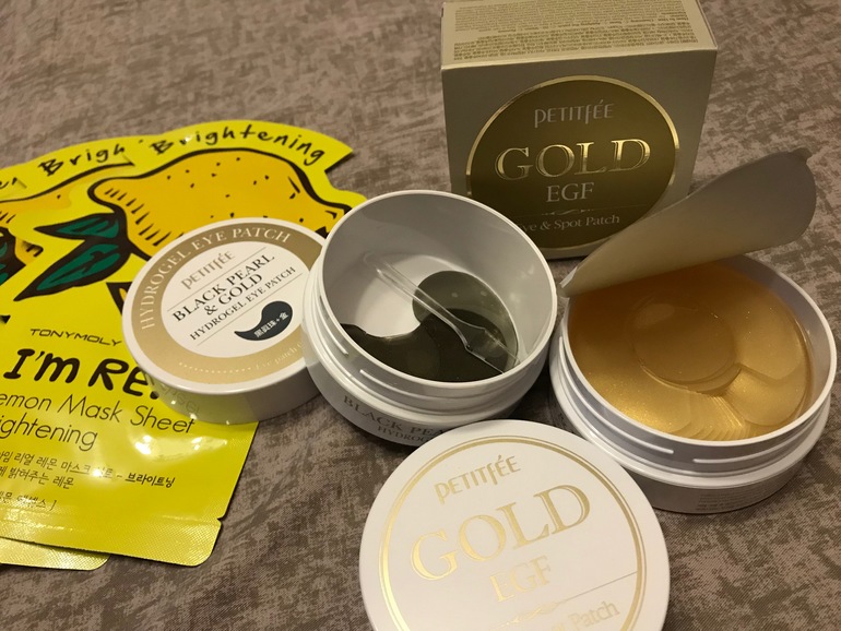 Патчи с чёрными жемчужинами и золотым гидрогелем.