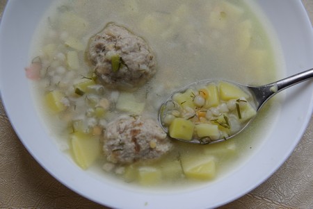 - это небольшие шарики жареной манной муки. В некоторые из них добавлен шпинат и томаты, а в некоторые нет. В процессе приготовления они немного разбухают, но остаются упругими. Надо жевать.