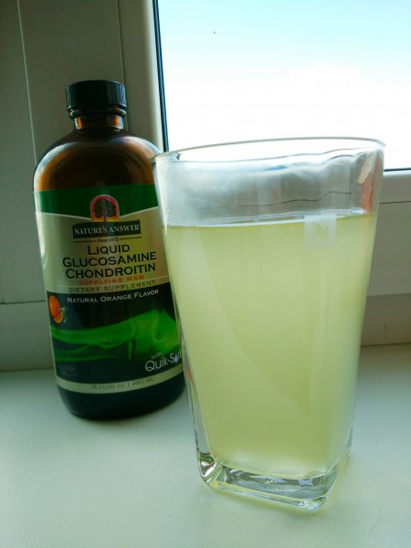Полукиллограмовая бутылка со столь необходимым для здоровья суставов. Взята по просьбе мужа. На сайте можно найти сотню более экономичных вариантов "Глюкозамин+Хондроитин+МСМ", но есть одно маленькое "НО": муж забывает пить таблетки и т.д., особенно если предусматриватся несколько приёмов в день. Он просто забивает на это. При этом он никогда не забывает выпить за ужином стакан "шипучей" витаминки:) И вот, чтобы он точно пропил курс хондропротекторов, я подобрала ему вариант в сиропе. Его удобно разводить в стакане с водой и пить вместо сока, компота.